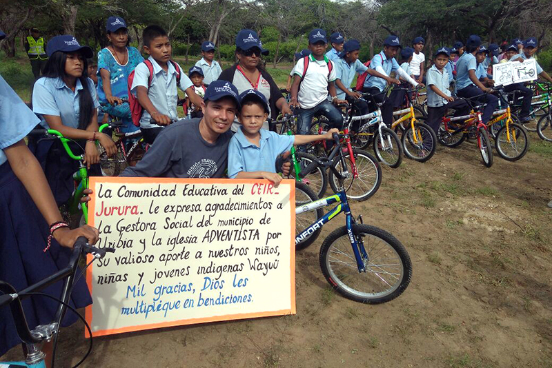 Cerca de 600 crianças que andam horas a pé para ir à escola foram presenteadas com bicicletas em La Guajira, no norte da Colômbia, uma região castigada pela seca. A doação foi possível graças ao apoio de cem voluntários de igrejas locais, da Universidade Adventista da Colômbia, em Medellín, e de empresários. [Equipe RA, da redação / Com informações de Shirley Rueda]