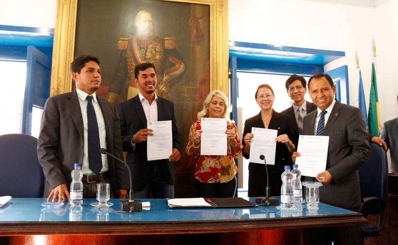 Em um ato solene na Câmara de Vereadores de Cachoeira (BA), foi assinada uma carta de intenções, por meio da qual as autoridades locais e de municípios vizinhos autorizam os futuros estudantes a realizar estágios nessas cidades. Foto: Monique dos Anjos