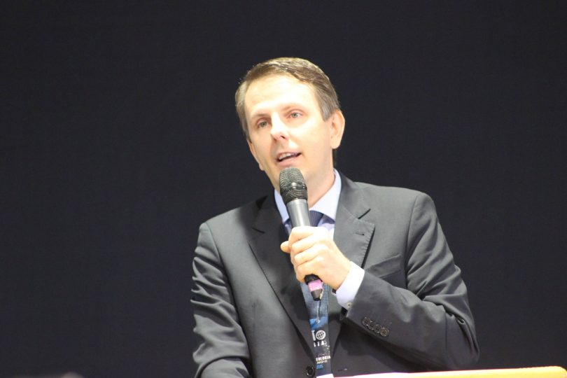 Gary Krause, líder do departamento de Missão Global da sede mundial adventista. No sábado, dia 21, ele desafiou mais de 2 mil estudantes do Unasp, campus Engenheiro Coelho, a encarar os desafios da missão. Foto: Jhady Felipe