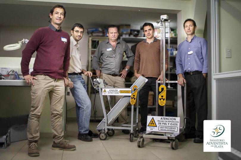 O departamento de eletromedicina do Hospital Adventista del Plata, que fica ao lado da universidade com mesmo nome, na pequena cidade de Libertador San Martin (Argentina), desenvolveu dois aparelhos que emitem raios ultravioleta, a fim de ajudar na desinfecção dos ambientes (clique aqui para ler a reportagem completa). Desenvolvido por um time de quatro engenheiros e um técnico, um dos aparelhos foi projetado para ser usado em salas vazias e, o outro, para ser operado por um funcionário. Os raios UV são prejudiciais para a pele e olhos humanos, mas têm o poder de eliminar vírus e bactérias do ambiente. [Da Redação / com informações e foto da equipe de Comunicação do SAP]