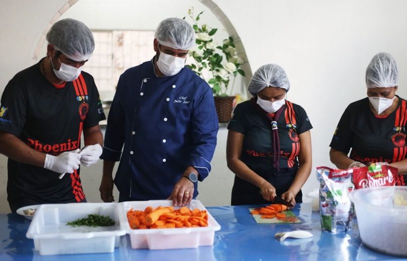 Com o apoio de voluntários, chef mineiro prepara marmitas para serem distribuídas nas ruas de Belo Horizonte (MG).