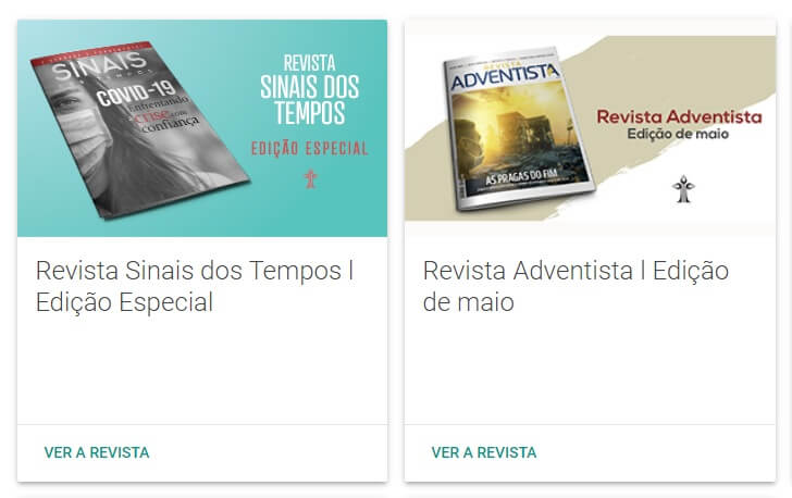 Outra novidade que também pode ser baixada do catálogo da editora é a edição especial da revista Sinais dos Tempos. O material, adaptado da Signs, publicada pela Pacif Press, apresenta informações sobre a Covid-19, fala sobre prevenção e fortalecimento do sistema imunológico, responde a perguntas relacionadas aos sinais do fim do mundo e mostra como as pessoas podem enfrentar a crise com confiança. Para ter acesso ao material, clique aqui.