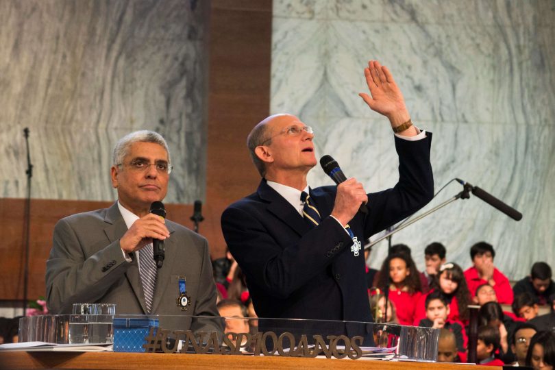 O comprometimento da instituição com os valores que influenciaram o surgimento da educação adventista no século 19 foi um dos aspectos destacados pelo presidente mundial da Igreja Adventista, pastor Ted N. C. Wilson, que veio ao Brasil para a celebração. Na ocasião, o líder participou de um culto de gratidão realizado no campus São Paulo, onde destacou o papel do Unasp em formar novos missionários e educar para a eternidade. “Nesta instituição, que oferece mais do que ensino, nós preparamos pessoas para a volta de Jesus”, enfatizou Ted Wilson.