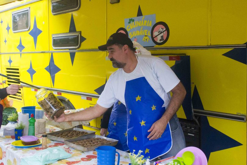 Motorhome que ensina culinária saudável foi uma das atrações de uma feira de saúde que aconteceu no último domingo, 31 de maio, em Tatuí (SP). Projeto nasceu da preocupação de uma família de promover uma alimentação mais saudável entre as crianças. Foto: Márcio Tonetti