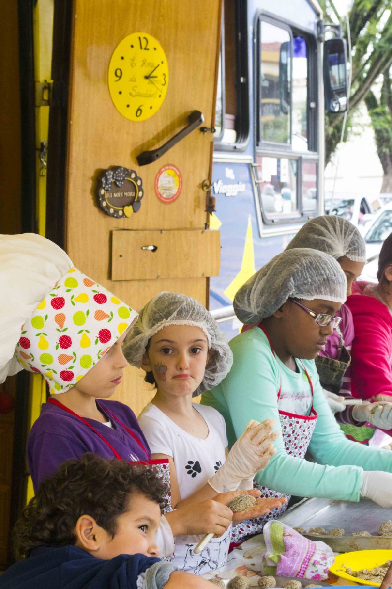 Além de adquirir hábitos saudáveis, no motorhome as crianças aprendem que comida vegetariana também pode ser saborosa. E o modo de aprendizado não poderia ser outro. É fazendo que elas provam que isso é verdade. Trajando aventais e toucas, os “chefs mirins” preparam diante de expectadores com olhinhos atentos e água na boca receitas que incluem kibes vegetarianos, cookies de aveia, suco detox e pão de mandioquinha. E o melhor momento para a turma, como é de se imaginar, é a hora da degustação.