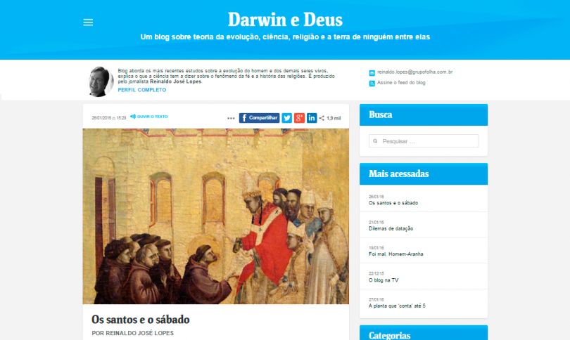 Nesta semana, o tema da guarda do sábado foi pauta no site da Folha de S.Paulo, um dos jornais mais influentes de todo o país. Em resposta à pergunta de um dos leitores da coluna “Darwin e Deus”, que trata de assuntos relacionados ao evolucionismo, à ciência e à religião, o jornalista Reinaldo José Lopes explicou por que a maioria dos cristãos guarda o domingo em vez do sábado.