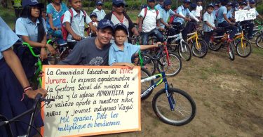 Crianças colombianas que andam horas a pé para ir à escola são presenteadas com bicicletas.
