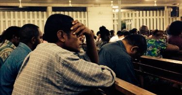 Membros de uma Igreja Adventista em Port Moresby, Papua Nova Guiné, participam do programa dos dez...